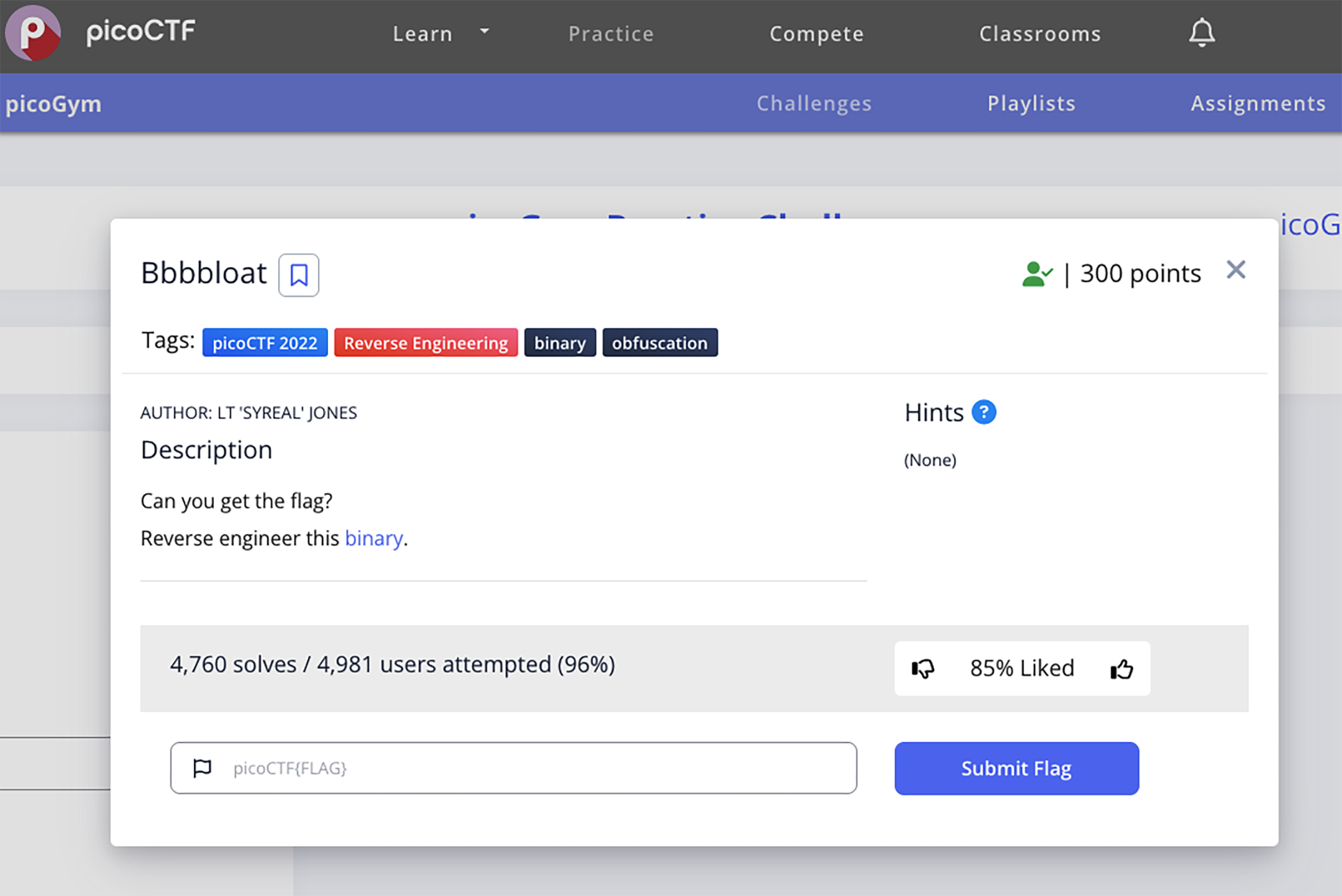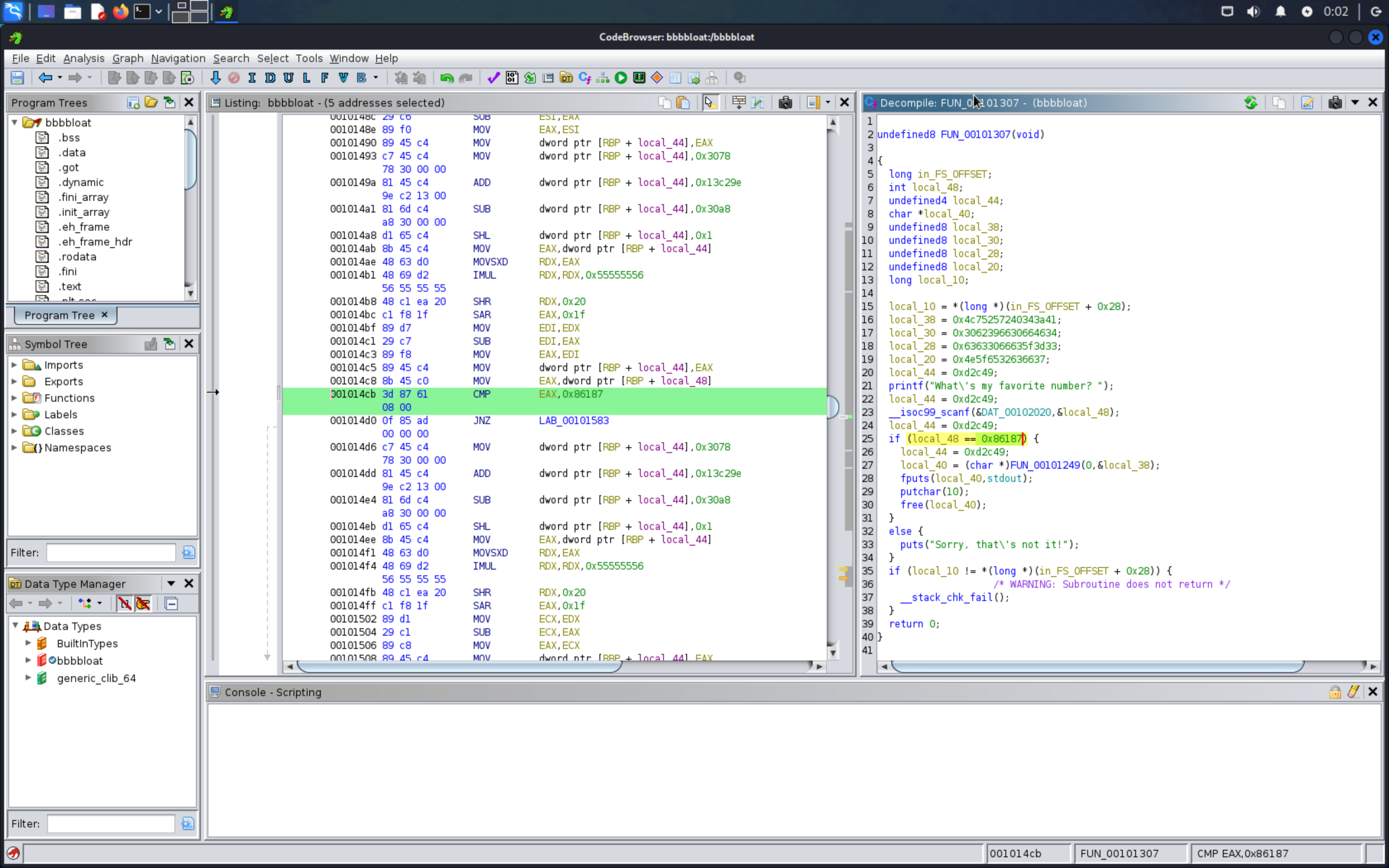 I found a few minutes to try the bbbbloat reverse engineering challenge from PicoCTF.